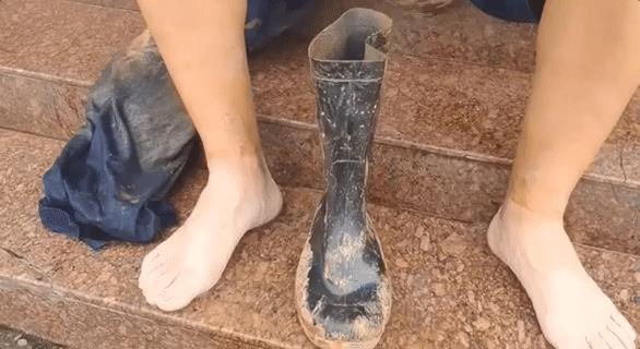 在江西永修,25名指战员连续奋战18小时,脱下靴子的那一刻,让人心疼。![]()