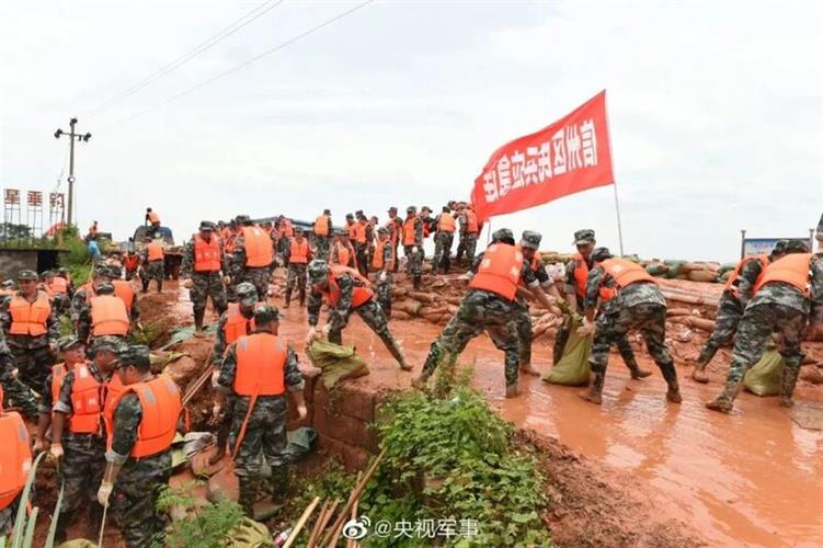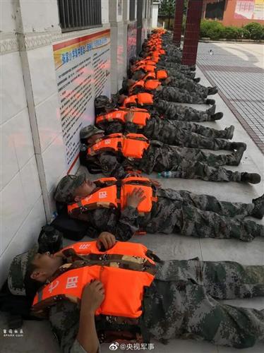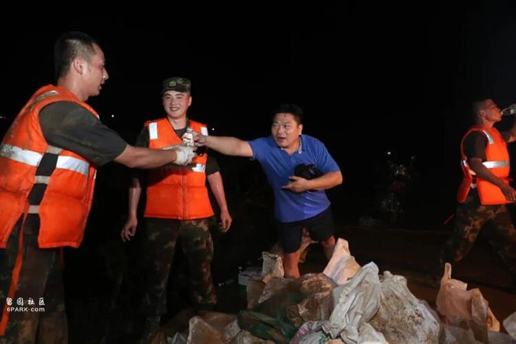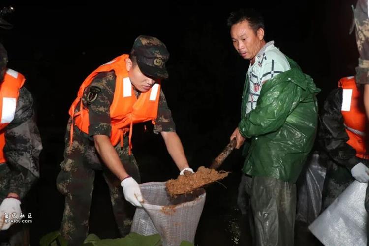 在很多地方,不少地方群众自发加入抗洪行动中,与官兵一同挖沙填坑、打灯照明、为战士们送水……![]()