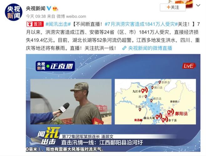 截至目前,7月份以来的洪涝灾害已经造成江西、安徽等24省(市、区)1841万人受灾,直接经济损失419.4亿元。