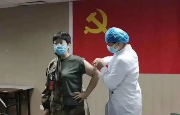 ▲ 陈薇院士出征武汉一线前在注射提高免疫力的药物