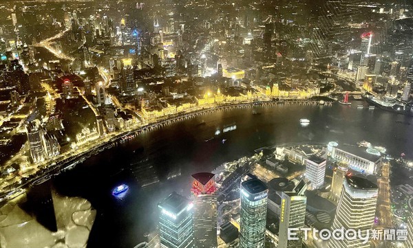 ▼从上海中心J酒店欣赏上海夜景,流光四射、耀眼夺目。(图/记者赵祎摄)