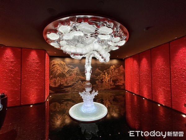 ▼中餐厅大堂前迎客的祥龙琉璃雕塑。(图/记者赵祎摄)