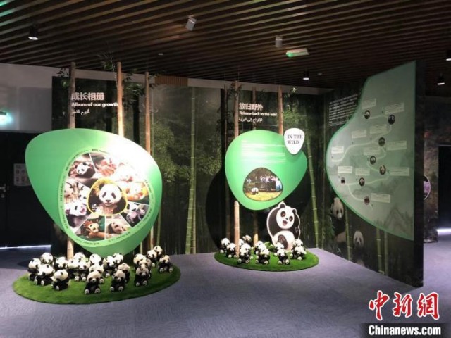 中新网成都10月6日电 记者从中国大熊猫保护研究中心获悉,中国大熊猫保护主题展于日前在阿联酋2020年迪拜世界博览会中国馆正式亮相。此次主题展由国家林业和草原局指导,国家林业和草原局野生动植物保护司、中国大熊猫保护研究中心共同主办。展览以“同一片蓝天·同一个梦想”为主题,展示了中国生态建设成果、大熊猫科研保护成效等内容。