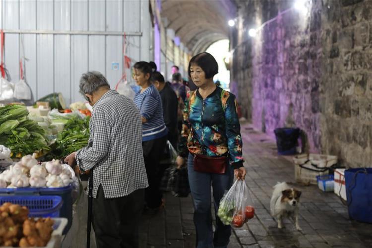 9月25日,居民走进“洞子菜市”采购。新华社记者周思宇 摄