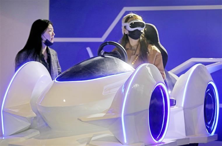2023年3月21日,杭州,观众在中国虚拟现实与元宇宙产业峰会上体验车载XR智能座舱。IC 图