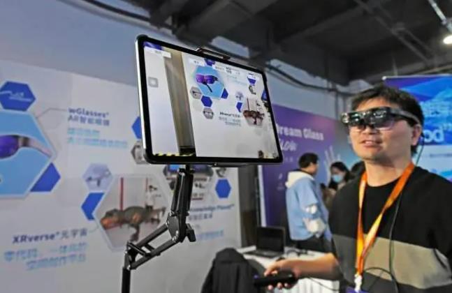 2023年3月21日,杭州,观众在中国虚拟现实与元宇宙产业峰会上体验AR智能眼镜。IC 图