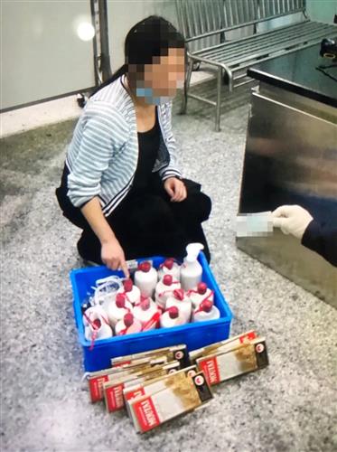 当天17时20分左右,女子秦某经拱北口岸旅检大厅海关“无申报通道”进境。关员观察到其身着黑色长裙,神色异常、步伐沉重,遂将其截查。经进一步查验,发现其在左右大腿、小腿处均绑藏了数瓶贵州茅台酒,经清点共计14瓶。目前,上述案件已按规定作进一步处理。