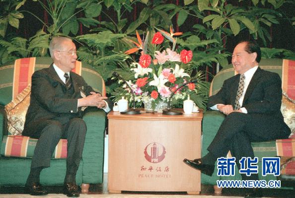 1998年10月14日,汪道涵在上海和平饭店会见辜振甫。新华社记者 马占成 摄