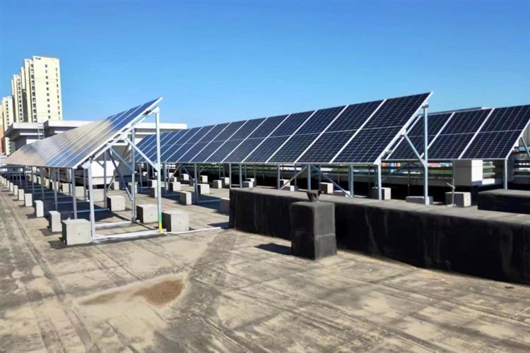 蓝天白云下,在哈尔滨尚志市一栋居民楼的屋顶上,几名施工人员正在组装光伏板。这是屋顶分布式光伏项目现场,正在进行汇流线敷设、逆变器安装、高低压电缆敷设等工作。