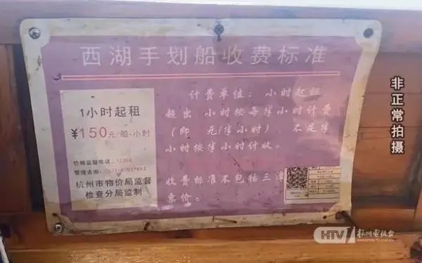 近日,有市民反映在西湖乘坐手划船时,明码标价为150元1小时、1小时起租,但实际上坐船时间只有30分钟左右,遭遇手划船“刺客”,该话题引发关注,登上热搜。