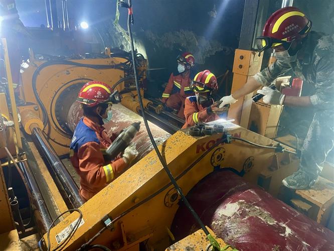 现场指挥部制定了“两主一备”救援方案,在隧道进口端实施小导坑掘进作业、出口端使用大口径水平钻机钻进救援,从两端向被困区域打通救援通道;在出口端实施小导坑作业打通救援通道作为备用方案。13日2时58分,国家隧道应急救援昆明队利用水平钻机打通救援通道。3时25分,第1名被困人员获救;3时29分,最后1名被困人员成功获救。