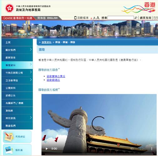 近日,香港特区政府政制及内地事务局更新其官方网页,用户在点入“国旗、国徽、国歌”页面后,无须跳转到其他网页即可直接点击下载中华人民共和国国歌的官方录音。记者实际操作发现,在该网页的英文版本点击相关链接,亦能方便、快捷地下载到国歌录音,不懂中文的用户亦可使用。