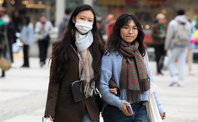 2023年4月19日,哈尔滨持续低温,市民穿冬装出行。视觉中国 图