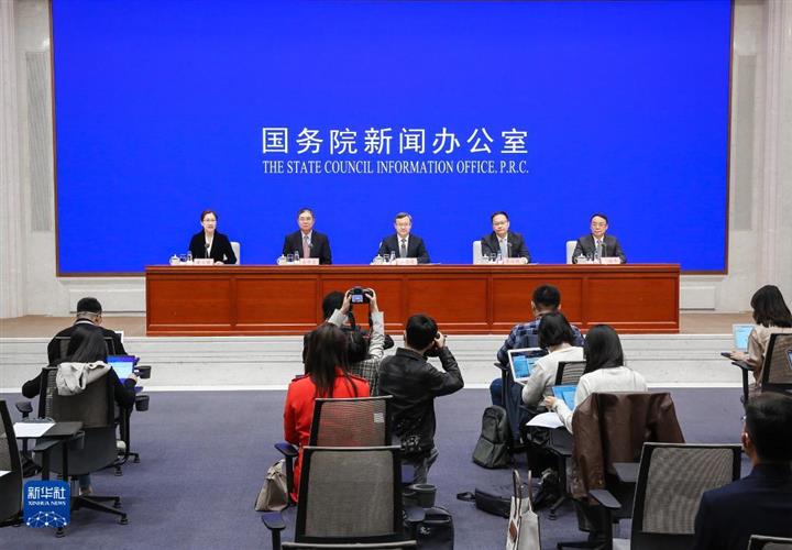 4月23日,国务院新闻办公室在北京举行国务院政策例行吹风会,商务部国际贸易谈判代表兼副部长王受文、商务部对外贸易司司长李兴乾和中国人民银行国际司司长金中夏、海关总署综合业务司司长吴海平介绍推动外贸稳规模优结构有关情况,并答记者问。新华社发(刘健 摄)