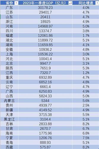 从总量上看,广东、江苏、山东、浙江、河南、四川、福建、湖北、湖南、安徽、上海、河北12个省份今年一季度GDP超过1万亿元。
