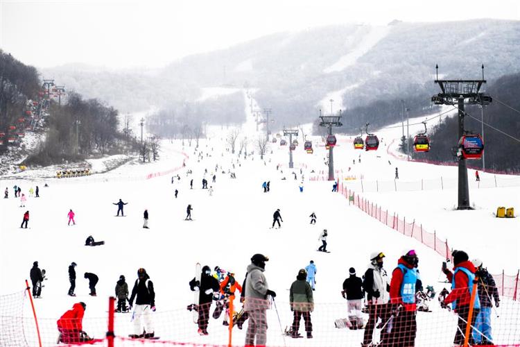 1月23日,滑雪爱好者在吉林市万科松花湖度假区滑雪。新华社记者 许畅 摄