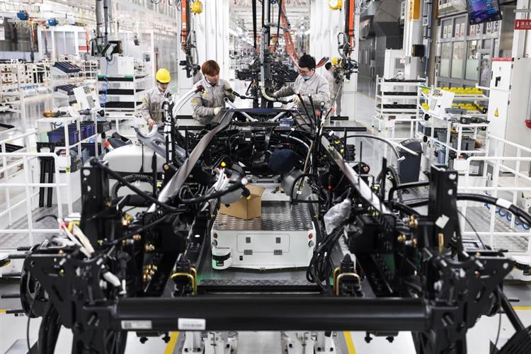 3月30日,工作人员在位于吉林长春的一汽解放J7智能工厂内进行整车装配作业。新华社记者 许畅 摄