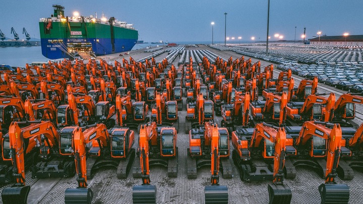 港口忙碌运转,集装箱频繁“迁徙”,印证中国外贸量稳质升的新气象。在山东港口烟台港商品车码头,小汽车正排列得整整齐齐,等待上船。