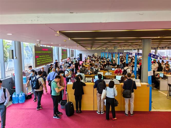4月16日,正在广交会办证处登记的中外采购商。新华社记者魏弘毅 摄
