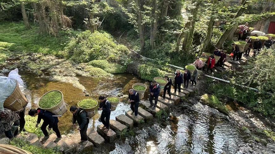 4月13日,雅安市名山区红星镇茶农背着鲜叶去市场销售。新华社发(彦戈 摄)