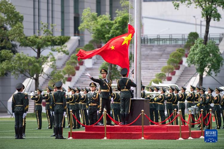 上午10时,驻澳部队氹仔营区,伴随着慷慨激昂的国歌,五星红旗冉冉升起。