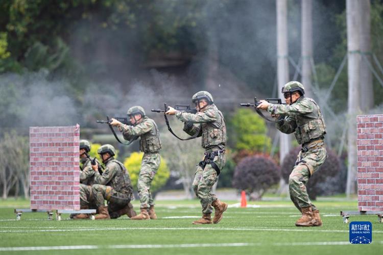 4月30日,中国人民解放军驻澳门部队官兵在第十七次军营开放活动上进行战斗班综合技能竞赛。新华社记者 张金加 摄