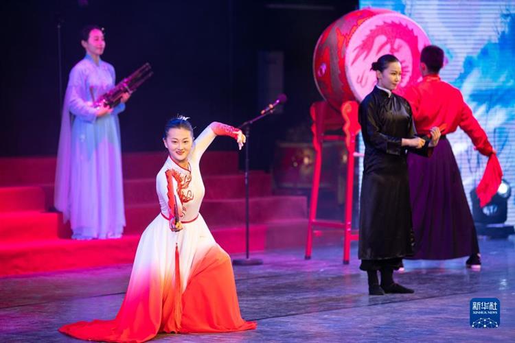 4月30日,中国人民解放军驻澳门部队官兵在《爱在澳门》文艺演出上表演。新华社记者 张金加 摄