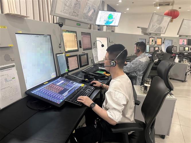 值勤管制员正在指挥相关飞机避让,协调多家单位做好保障工作 浙江空管供图