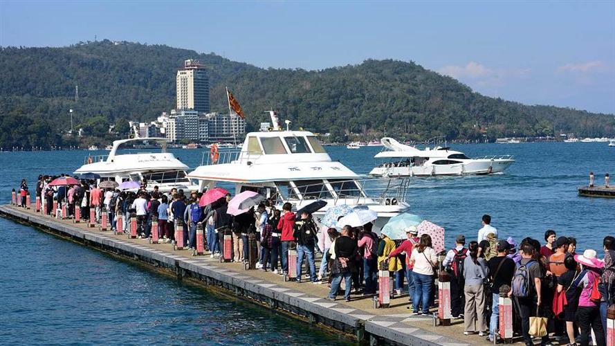 2019年2月8日,台湾南投,大批游人在日月潭旅游观光。视觉中国 资料图