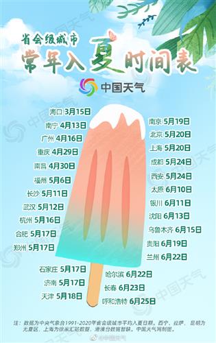 常年省会级城市入夏时间表出炉,北京上海等14大城市5月入夏