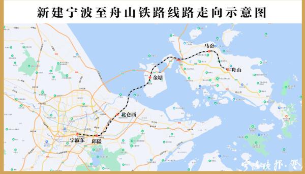 甬舟铁路西起宁波东站,经宁波鄞州区、北仑区,舟山市金塘岛、册子岛、富翅岛至舟山本岛,设7个站,正线长76.4公里,其中新建线路长70.1公里,设计时速250公里,是构建浙江省“1小时交通圈”,形成大陆与舟山岛间便捷客运的通道。建成后,宁波到舟山的通行时间将从现在的1.5小时缩短至26分钟,舟山到杭州的通行时间由3.5小时缩短至77分钟。