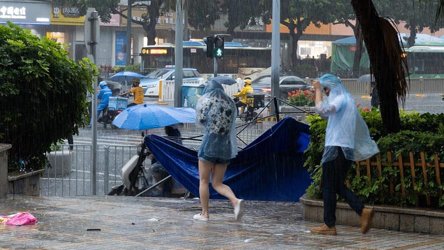2023年5月7日,深圳,暴雨天气,雨中跑步前进的人。视觉中国 图