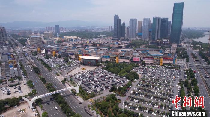 义乌国际商贸城停车场车位接近饱和(无人机照片)。 董易鑫 摄