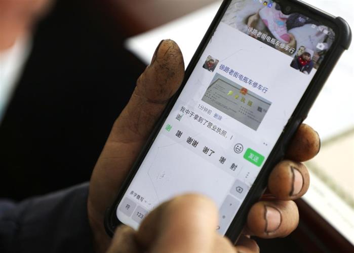 胡师傅拿到营业执照后,开心地发布一条“朋友圈”信息。 受访者供图