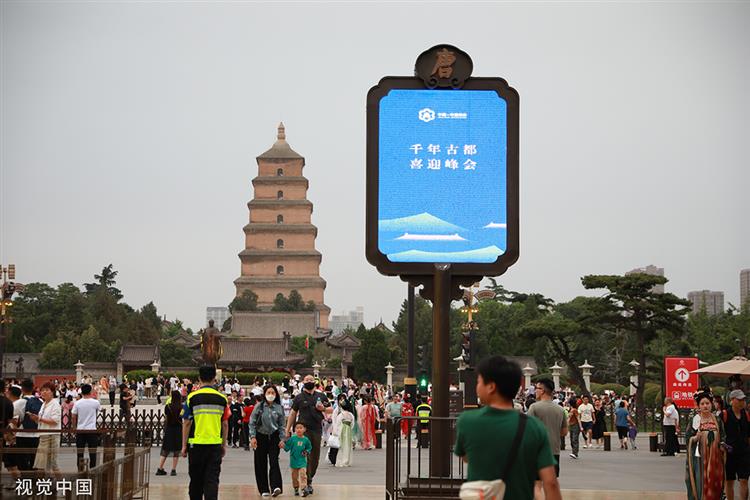 在古城西安的大街小巷浓厚的盛会氛围弥漫,各类“中国—中亚峰会 西安欢迎您”的标语、公交车及出租车上的宣传海报、户外大屏滚动播放的宣传片等向世界展现西安的魅力和热情。