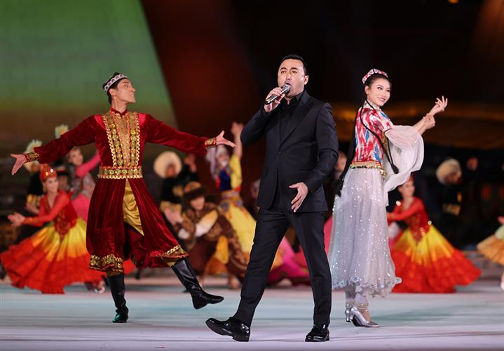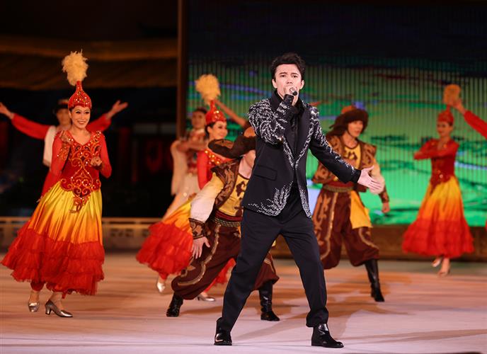 5月18日,演员在中国-中亚峰会文艺演出中演唱歌曲。
