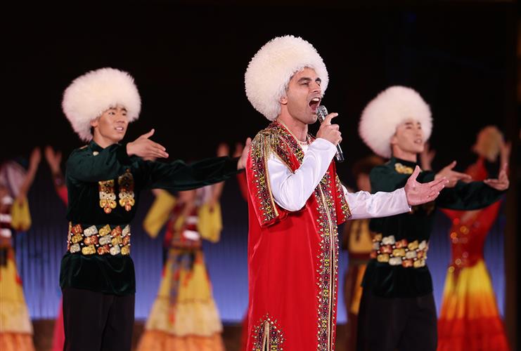 5月18日,土库曼斯坦歌手在中国-中亚峰会文艺演出中演唱歌曲。