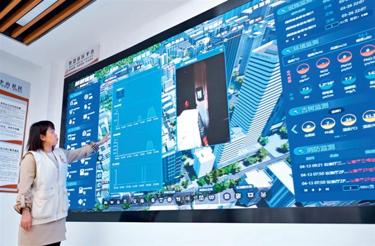 福建省福州市鼓楼区是国家智能社会治理综合实验基地,社区工作者在鼓楼区鼓东街道中山社区介绍“智慧社区”建设情况(2023年4月25日摄)林善传摄/本刊