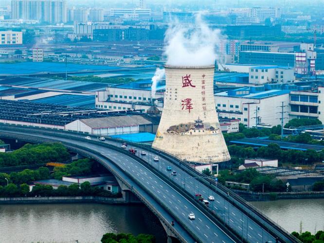 “没想到一个小镇就有‘三环’,早晚高峰还堵车。哟!这里还是‘中国丝绸第一镇’。”跟随记者一路调研的司机师傅说道。顺着师傅的示意向窗外眺望,右前方高耸的白色冷却塔,渐行渐近。塔上“盛泽”二字以及水乡场景彩绘画,让这高55米、底部直径约48米的冷却塔,看起来像是一处“文化地标”。