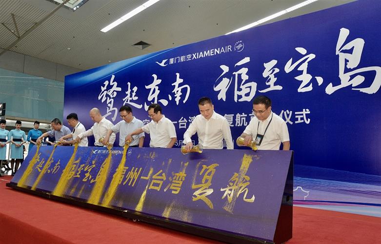 2023年5月22日,福州,厦门航空福州-台湾航线复航举行首飞仪式。视觉中国 图