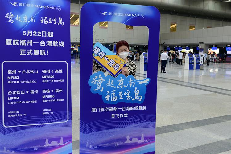 2023年5月22日18时许,福州长乐国际机场往返台北松山机场的客运航线正式恢复运营。载有157名旅客的厦门航空MF883航班从福州出发,飞往台北松山,这也是福州时隔三年重新恢复往返台湾地区的第一条直飞客运航线。
