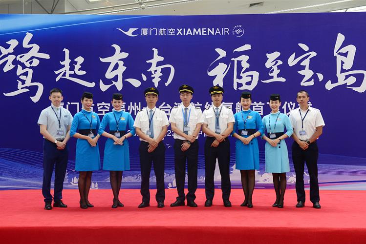 2023年5月22日,福州至台湾航线正式复航,机组人员亮相。视觉中国 图