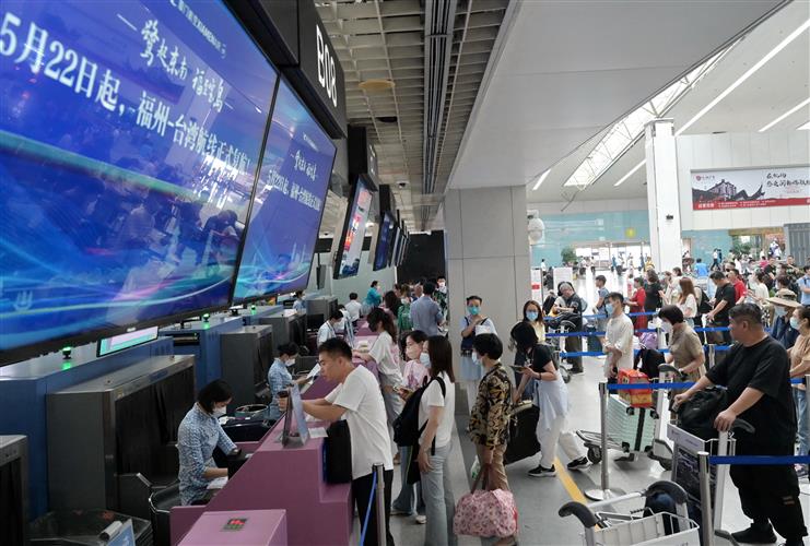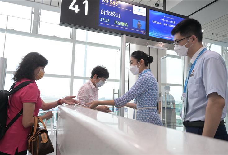 2023年5月22日,旅客在福州长乐国际机场办理飞往台北松山机场的MF883航班登机手续。新华社记者 林善传 摄