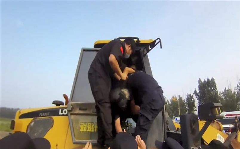 韩国被几名警务人员拽出铲车驾驶室 视频截图