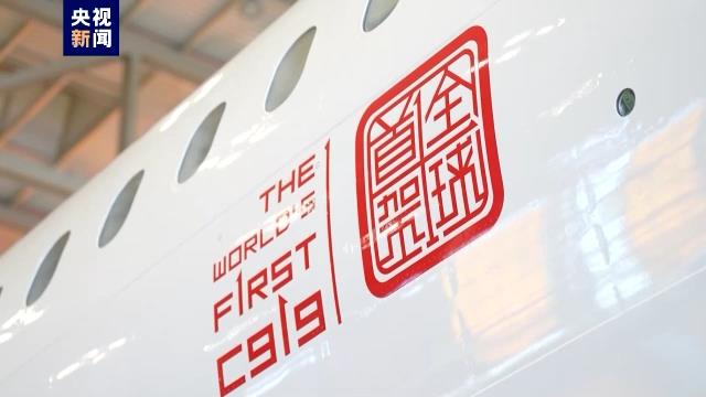 机身前部印有“全球首架”的“中国印”标识和对应英文。飞机注册号B-919A,“B”代表飞机的中国国籍,“919”和型号名称契合,“A”则有首架之意,突显这一全球新机型、全球首架的非凡意义。