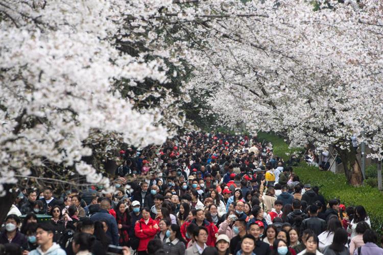 2023年3月18日,武汉大学举行抗疫医护赏樱专场。新华社记者肖艺九 摄