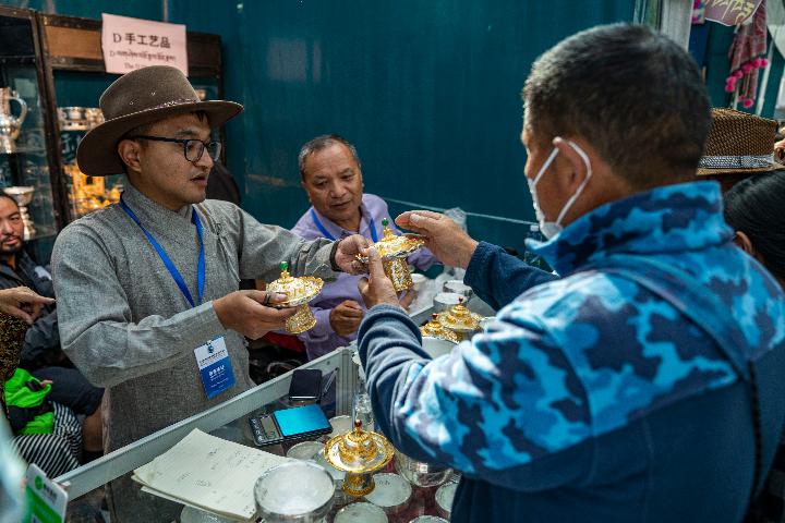 今年6月16日至18日,第五届中国西藏旅游文化国际博览会在拉萨举办,吸引了来自海内外近千家企业参与,参展产品近万种。45岁的旺久泽巴来自不丹首都廷布,他们一行4人专门来参加藏博会展销活动,带来了价值约30万元的手工艺品。他告诉记者:“这是我第一次来拉萨,也是第一次参加藏博会。拉萨市民非常友好热情,我们的商品销量很不错,下次有机会我还会再来。”