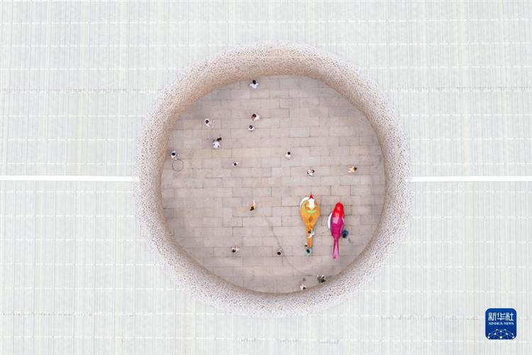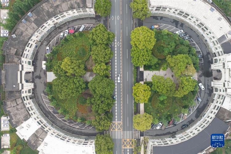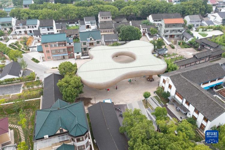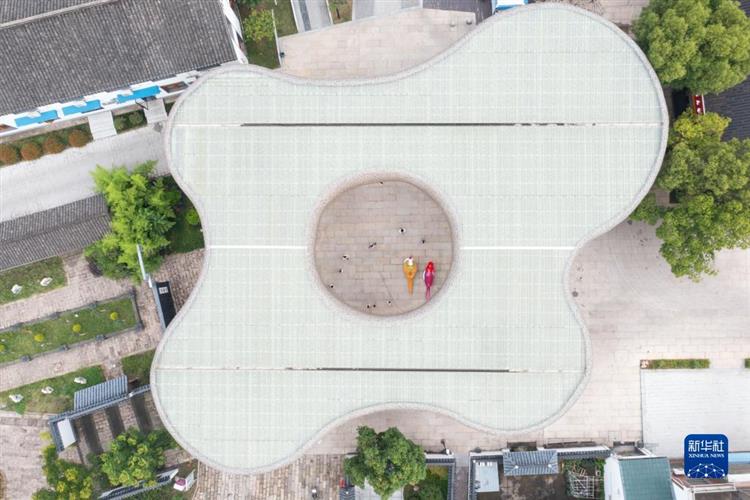 6月7日在浙江省绍兴市孙端街道安桥头村拍摄的“弶与小鸟雀”竹弶广场(无人机照片)。新华社记者 才扬 摄