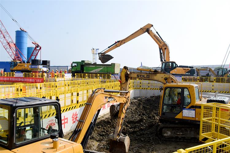 苏州东隧道进口明挖段基坑开挖施工现场。 上海铁路局供图