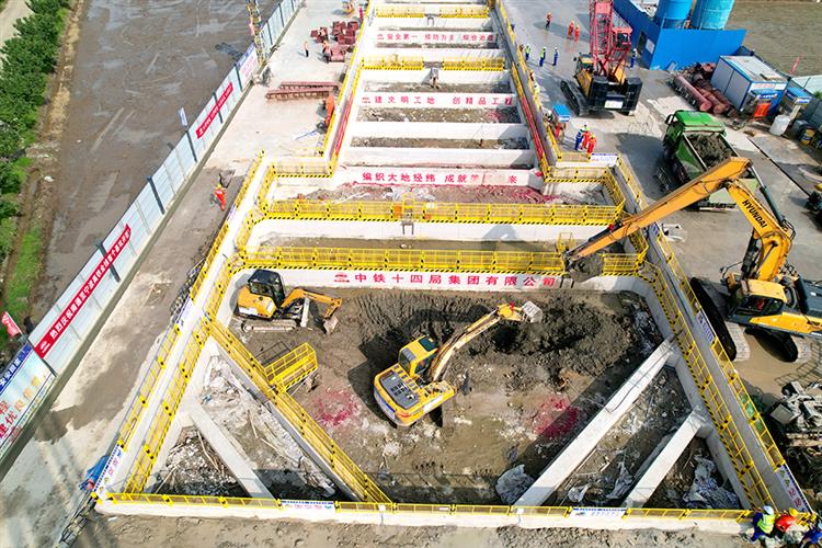 在施工作业中,遵循“开槽支撑、先撑后挖、分层开挖、严禁超挖”的原则,快挖快撑,减少无支撑暴露时间。同时,采取分层分段模式顺作法施工,共分四层作业,支护采用“混凝土支撑+钢支撑”形式,施工中盯紧降水沉降监测数据,严密监视沉降或倾斜的发展趋势,确保基坑开挖安全稳定。盾构始发段基坑预计今年7月下旬完成开挖后,将转入主体结构层板及侧墙施工。